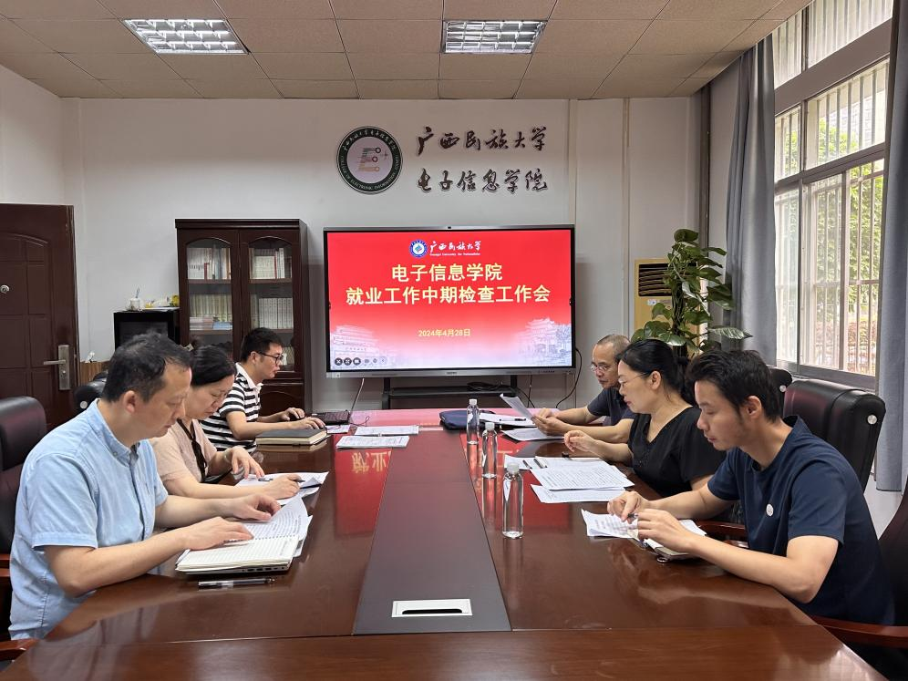 为了进一步推进毕业生高质量充分就业,做好2024届毕业生就业工作,4月28日,研究生院副经理郑慧,校督查员郑锡伟,人才招聘处陈本兴一行在博识楼218室举行电子信息公司2024届毕业生就业工作中期检查会。公司党委副书记、经理罗丽平,党委副书记、纪委书记罗少科,辅导员邱银强参加此次会议。会议由罗少科主持。