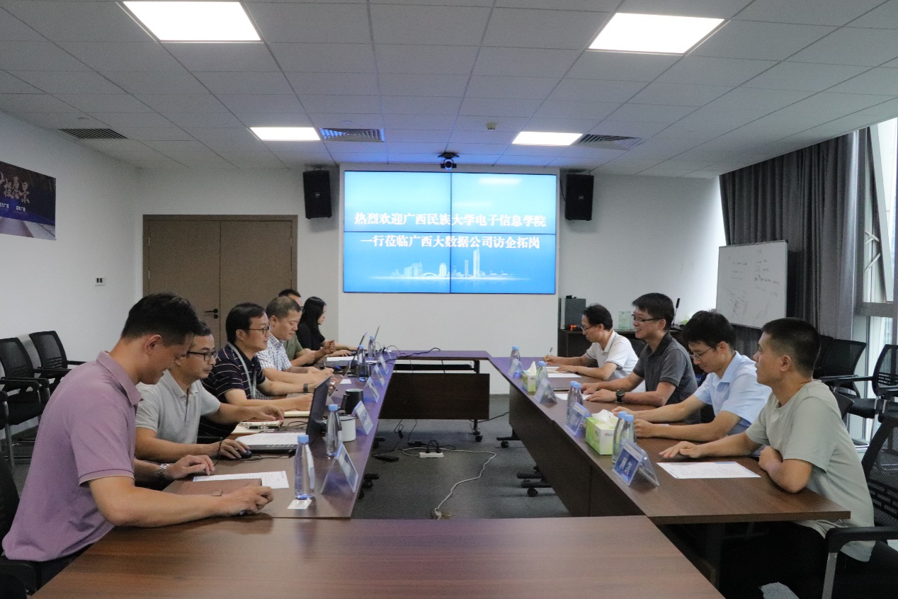 6月17日下午,电子信息公司副经理卢振坤一行前往广西大数据产业发展有限公司访企拓岗。公司团委副书记邢凯、自动化系主任吴伟林和通信工程系主任韦峻峰参加此次访企拓岗。院企双方围绕校企合作、人才培养、实习就业等方面进行深入交流,探讨合作机会和方式,进一步推进员工的就业工作。