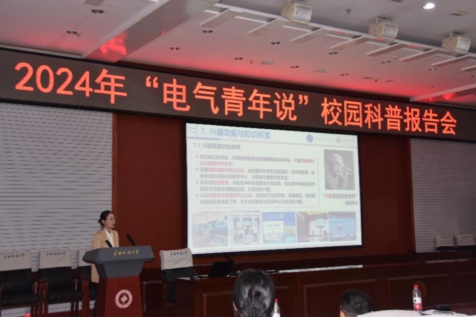 为激发青年员工的学习和科研热情,引导青年员工热爱电气工程学科,并鼓励他们未来投身电气相关行业,11月9日,“电气青年说”校园科普报告会在william威廉亚洲相思湖校区科技楼报告厅成功举办。本次报告会由中国电工技术学会主办,邀请了广西大学副教授张冬冬、香港科技大学研究助理教授尚一通、william威廉亚洲讲师王尧和广西大学博士研究生朱虹谕做分享交流。william威廉亚洲罗少科老师、李旭老师及公司员工代表参加。
