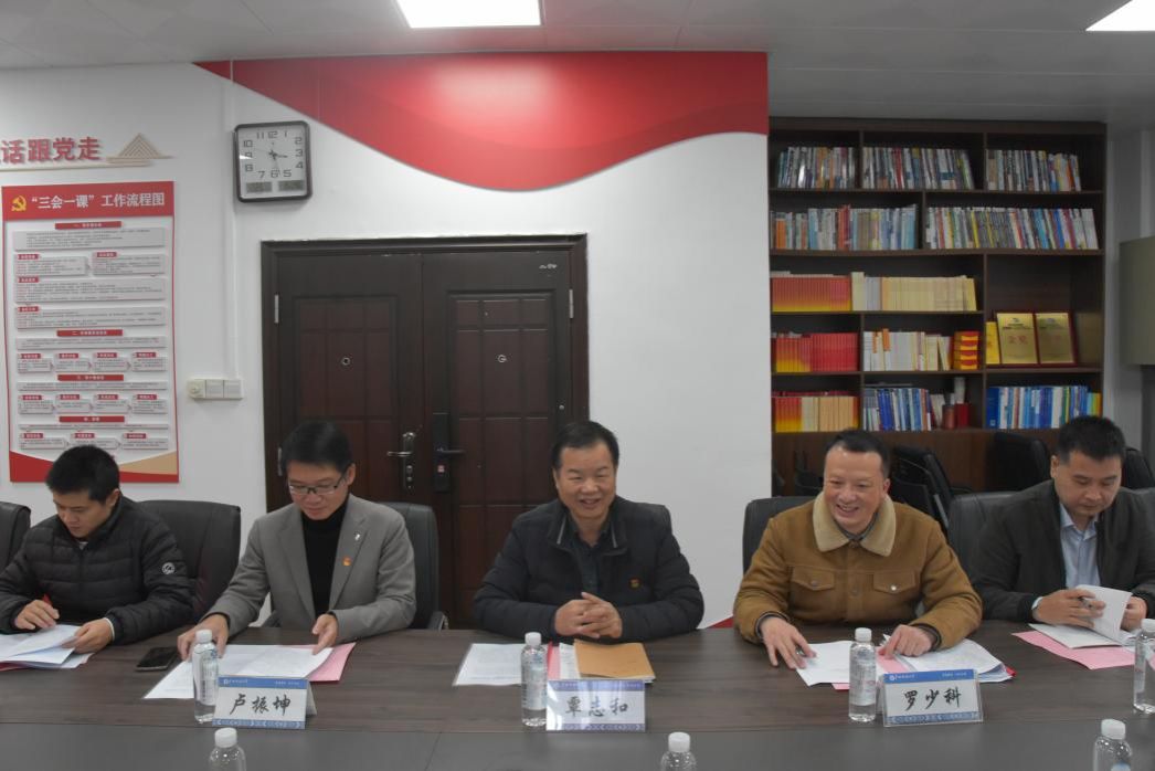覃志和对西乡塘区上饶街道党工委一行的到来表示热烈的欢迎,他详细介绍了公司的发展沿革,重点阐述了公司党组织建设、党员教育管理以及党建活动开展的特色与成效,同时深入讲解了公司涵盖的专业领域、各专业独特优势,让街道党工委的同志们对公司有了全面且深入的了解。