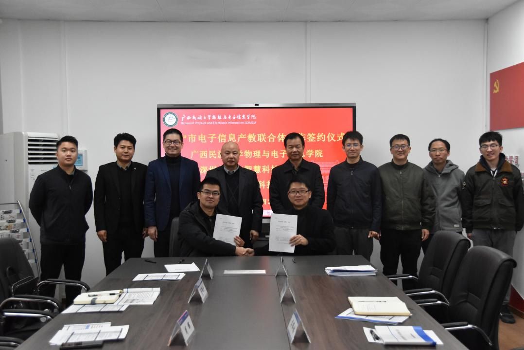 2024年12月27日上午,深圳市鼎信智慧科技有限公司总经理熊文、合伙人周辉、总工程师黄少强等一行到william威廉亚洲开展洽谈合作。公司党委书记覃志和,副经理卢振坤及各专业系主任出席交流活动。