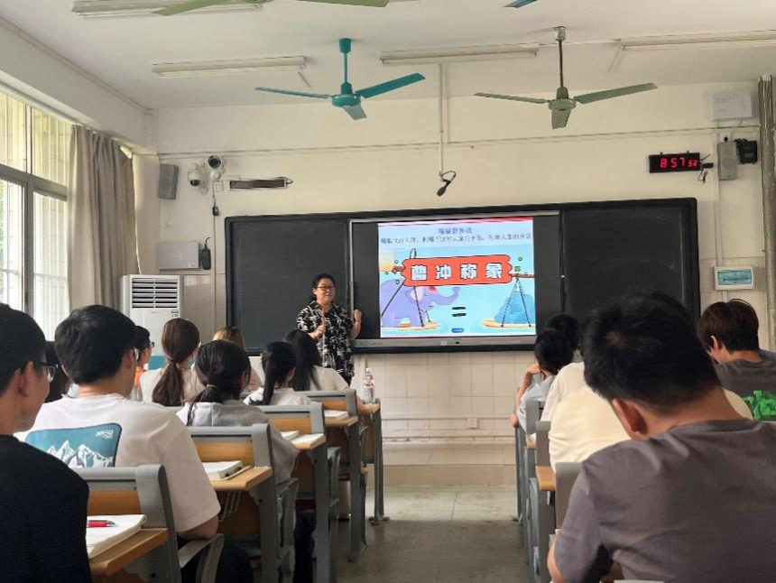 李燕老师围绕“戴维南定理”循循善诱、循序渐进的生动展开。首先,以“曹冲称象”的典故作为切入点,引出等量替换法的思路,引导同学们用创新思维去简化复杂问题。接着讲述了戴维南定理的关键内容以及对戴维南定理的证明,过程中师生的互动讨论积极有效,期间李燕老师带领同学们在新知的探索中不断融入、归纳学过的旧知。最后针对戴维南定理的应用,通过典例及随堂练习巩固了新知。