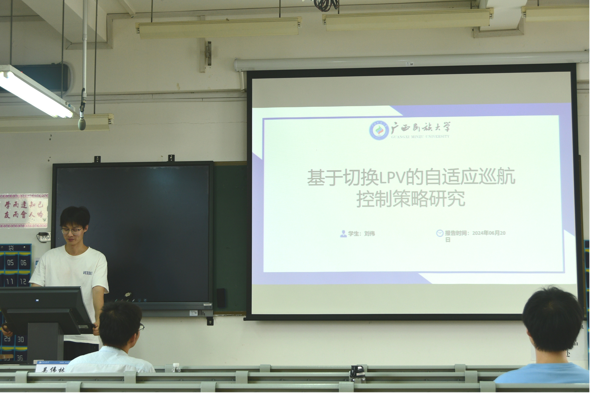 本次学术交流活动由揭宇阳、朱贺、刘伟、潘冲、伍杨五位同学分享,分别就基于深度学习的息肉图像处理算法研究、基于深度学习的道路交通标志检测算法研究、基于切换LPV的自适应巡航控制策略研究、基于分割对抗网络的甲状腺超声结节分割方法研究、氧化锌异质结紫外探测器的研制与研究等五个方面进行分享交流。