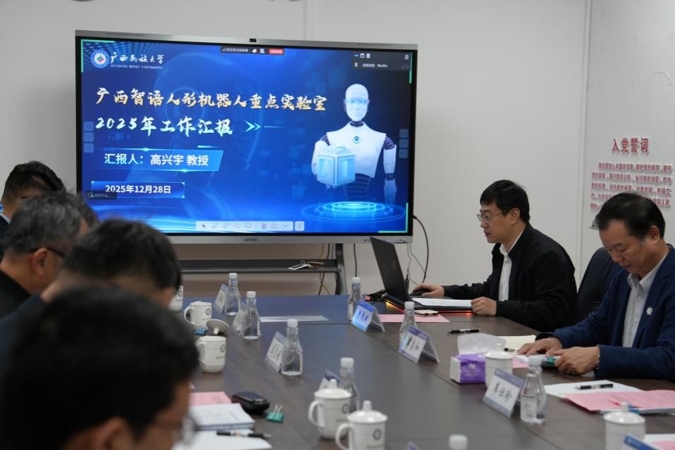 高兴宇代表广西智语人形机器人重点实验室作2025年度工作报告。报告系统阐述了实验室的建设成效,详细汇报了在人才队伍建设、科研任务部署及平台能力提升等方面取得的显著成效,并围绕国家战略需求和科技发展趋势,提出了未来发展的战略思考和工作计划。